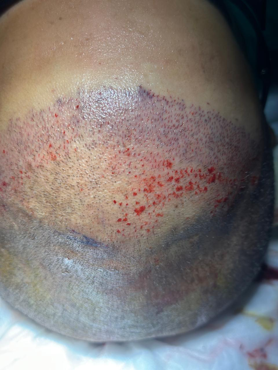 Days 1-3 Mild redness, tightness, and scabbing appear. Keep the scalp hydrated and elevated.